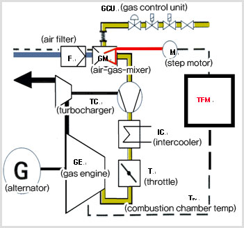 - Using the combustion temperature, e.g. the emission control of the engine is governed through TEM by adjusting the air-gas ratio. |