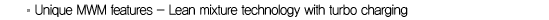 - No pressure loss during mixture formation. Enhanced power output at max. efficiency.